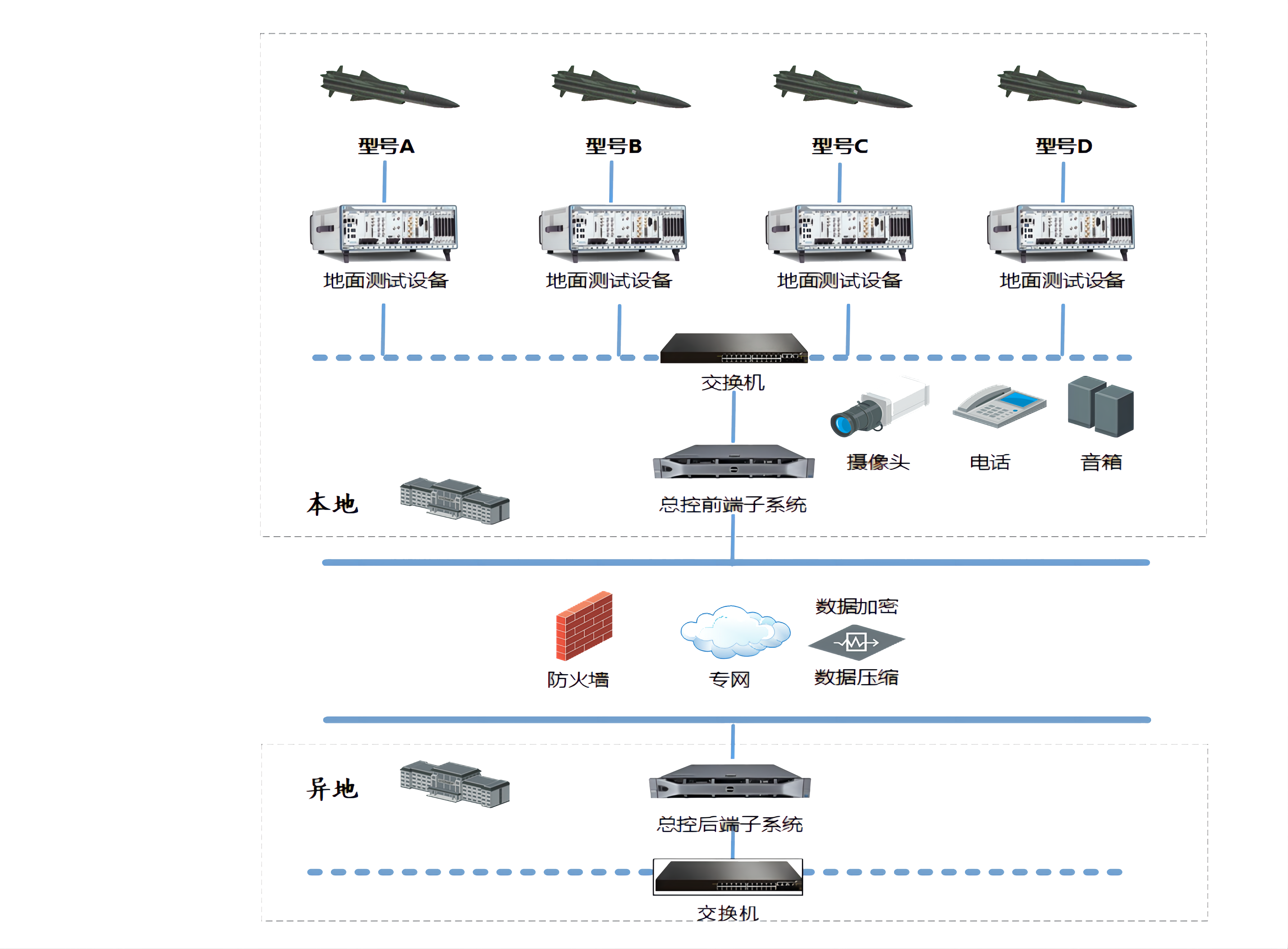 • 通(tong)過(guo)跼(ju)域(yu)網實現(xian)遠(yuǎn)程(cheng)異地測(ce)試,具(ju)備(bei)引信(xin)應答(dá)機(jī)、信(xin)号處理(li)器(qi)、伺服組郃(he)以(yi)及(ji)接收機(jī)等(deng)部(bu)件測(ce)試功能(néng)